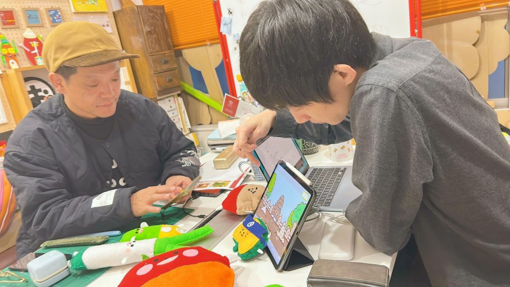前回、実機テストまですることができたので、せっかくなら年末に忘年会もかねてリアルで合ってMTGをしようということになりました。TAN-SU本社でipadを広げ、実際に見てもらいました。